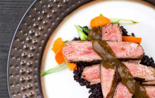 Flank steaks are a long, thin cut from the Flank. They offer great flavor at a more affordable price than the top shelf steakhouse cuts. Because of their prominent muscle fibers, they are typically cooked no further than medium rare & served thinly sliced against the grain.