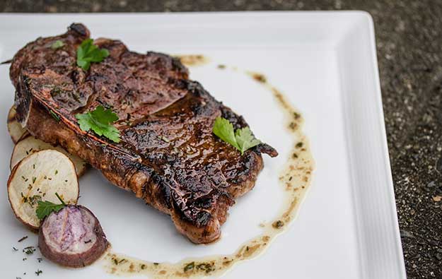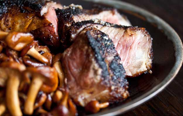 Chile Rubbed Grass-Fed Strip Steaks & Roasted Mushrooms